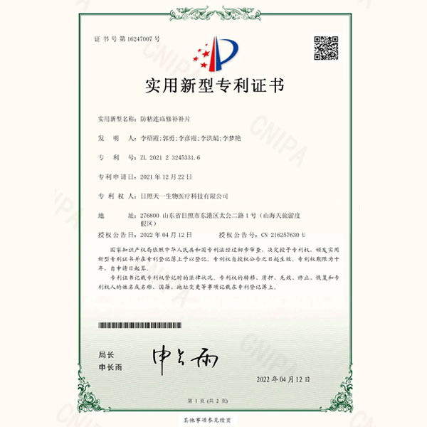 2011年,天一生物與山東省藥學(xué)科學(xué)院建立產(chǎn)學(xué)研合作,聯(lián)合研發(fā)疝修補(bǔ)類器械。該產(chǎn)品研發(fā)后曾在首都醫(yī)科大學(xué)附屬北京朝陽(yáng)醫(yī)院、首都醫(yī)科大學(xué)附屬北京同仁醫(yī)院進(jìn)行臨床試驗(yàn),試驗(yàn)結(jié)果表明,本公司產(chǎn)品組合形狀更符合臨床使用要求,方便臨床醫(yī)生術(shù)中操作,目前共擁有四大系列產(chǎn)品,臨床使用效果得到了行業(yè)眾多專家的一致好評(píng)。